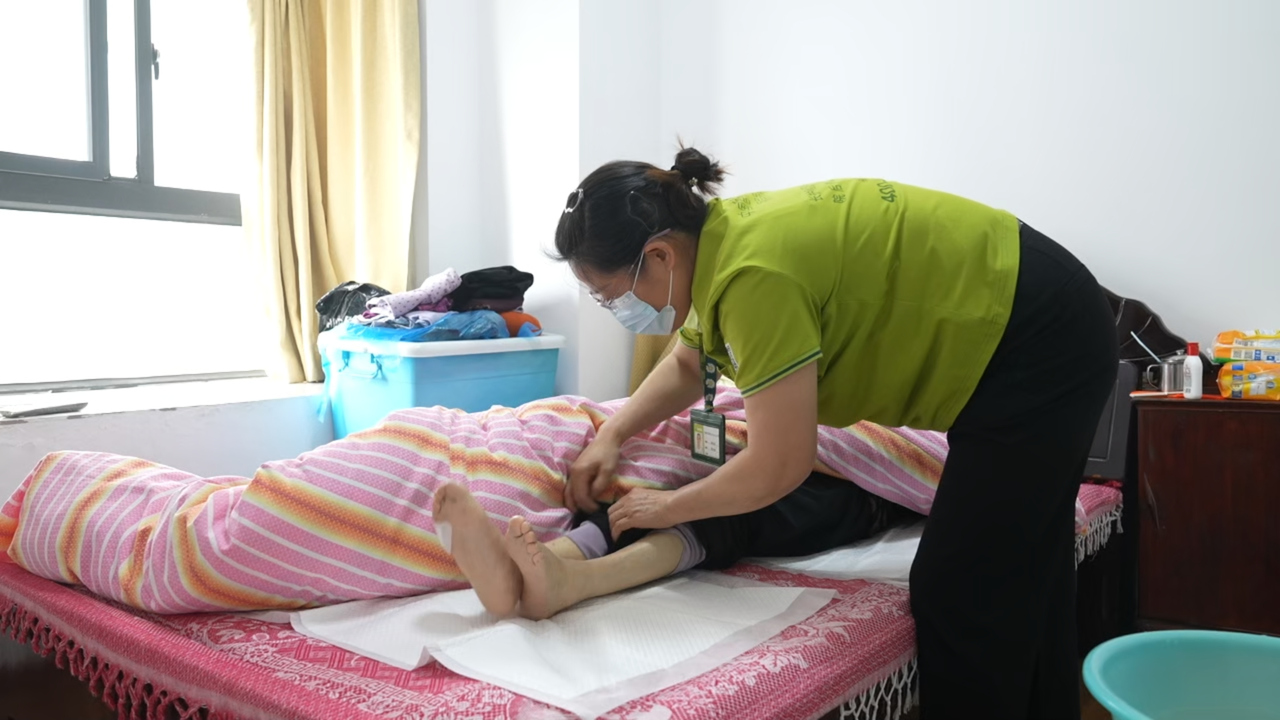 王阿婆的家人对此感慨良多。过去,繁重的照护工作全部压在一个人身上,家属身心俱疲,什么活都干不了。如今,护理员不仅帮忙擦洗、换衣,还会做专业的按摩和康复活动。“这既减轻了我的经济压力,也缓解了时间上的紧张。”老人家属陈雪平说。