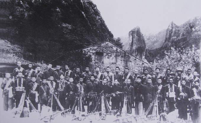 1948年10月中旬,括苍支队奇袭岙环镇和下凤山乡公所,歼灭国民党两支常备中队。图为胜利返回后在雁荡山合影。