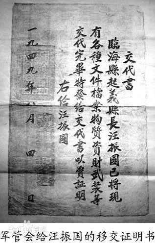 汪振国是安徽桐城人,1932年毕业于武汉大学,1947年10月调任临海县县长。