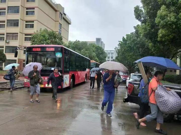 中午12时左右,台州公交集团巴士公司第一分公司收到椒江交通运输局关于章安街道杭绍台铁路建设项目部的救援申请。据了解,杭绍台铁路建设项目部位于章安柏加沙村附近,三区附近还有4个在建工地,工地现场多为移动板房,存在雨水倒灌、房顶被掀、泥石流、山体滑坡等安全隐患,现场的1110余名建设工人急需紧急转移。