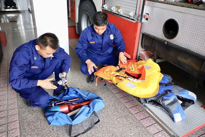 目前,台州消防救援队伍人员、装备已全部安排到位,全市22个消防站、99个乡镇消防队全员待命,同时组建了10支水域抢险救援突击队,每组8人(其中特勤中队水域抢险救援队为12人),配备了16辆抢险救援消防车(其中8辆为越野底盘消防车)、冲锋舟15艘,橡皮艇9艘,另外配备了770件救生衣、湿式救援服和其他水域救援器材。此外,各类消防车、消防泵油、水、电、气保持充足,已进入良好的战备状态,一旦发生险情,能够拉得出、用得上、打得赢。