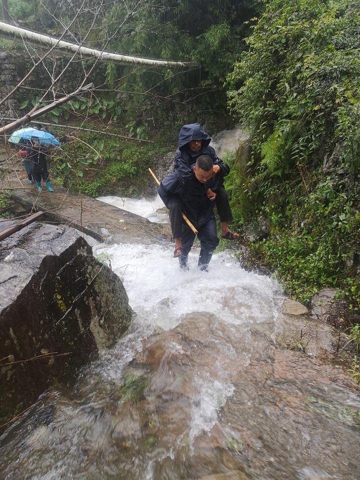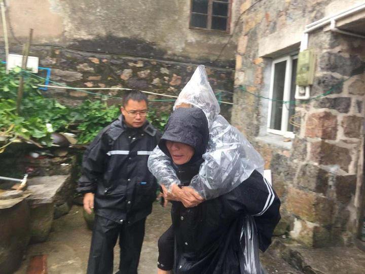 转移!转移!分秒必争为群众!随着台风步步逼近,转移山上独居老人刻不容缓。“台风就要来了,我背你走!” 下午1点左右,在临海市括苍镇海拔近1000米的阵车村,88岁的杨大爷坚持不愿转移,在村党支部书记杨浩做了一个多小时的思想工作后,终于动容。时针指向2点,眼见着山水满溢水流湍急,杨浩为他穿好雨衣,带上他的拐杖,背起他就往接送车上赶,顺利转移至镇区安置。