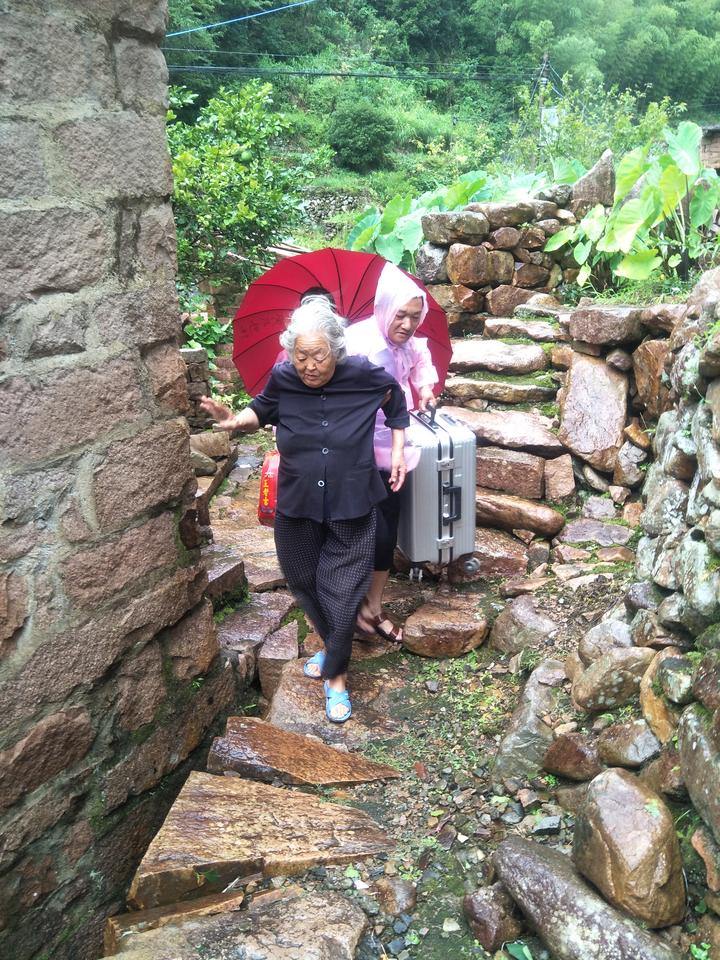 8月9日上午10去,玉环楚门镇筠岭村党员转移住在山上老房子里的村民群众,筠岭村响岩片转移山上住户。(通讯员 郑微微)