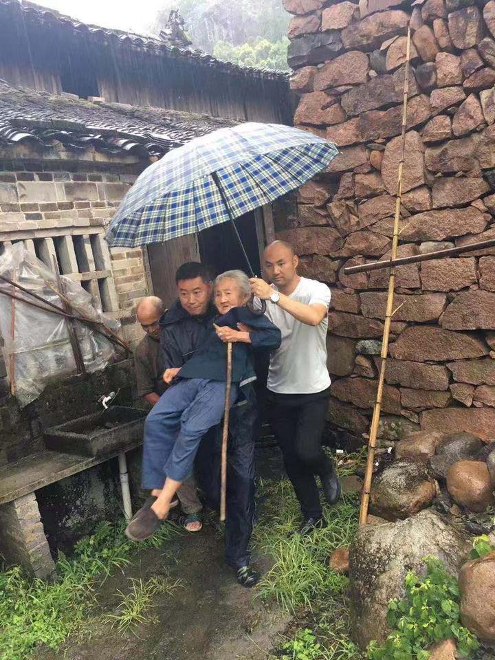 9日上午10时许,黄岩区北洋镇镇南新村转移孤寡老人和中风病人。