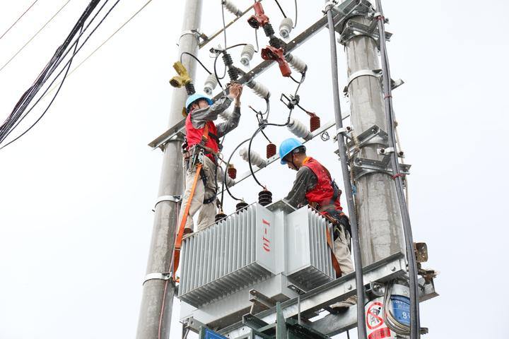 9日早上5时,受台风“利奇马”外围风力和暴雨影响,三门县亭旁镇西山村变压器出现用电故障。国网三门县供电公司员工冒雨顶风,组织人员立即奔赴现场上杆抢修,更换配变跌落式熔断器,确保了176户用户台风天里的可靠用电。(通讯员 程亚军)