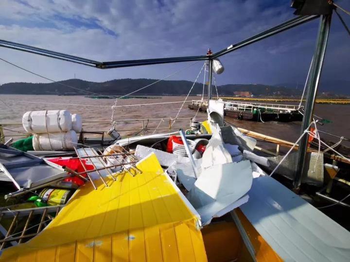据了解,此次大陈岛深水网箱和贻贝受损严重,土地堂山下一处深水网箱黄鱼养殖基地网箱全部吹散,贻贝全部打散。