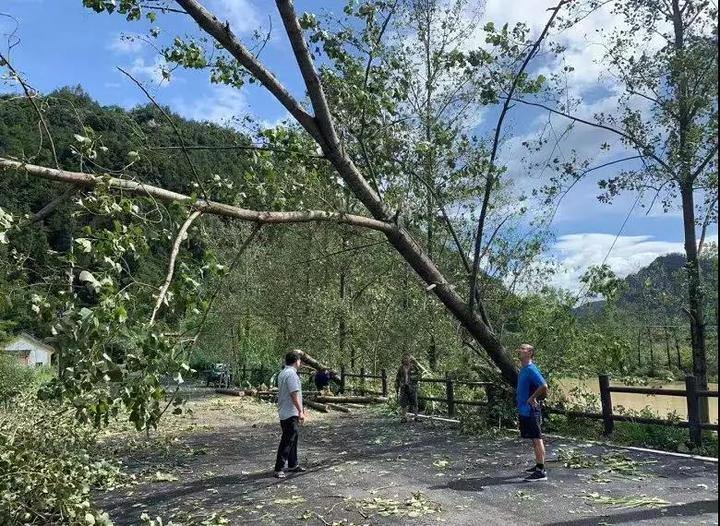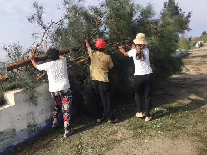 活动中,近100名党员重点清理了倒伏的树木,清除了路面障碍,并将被台风刮断的树枝集中堆放,等待统一搬运。