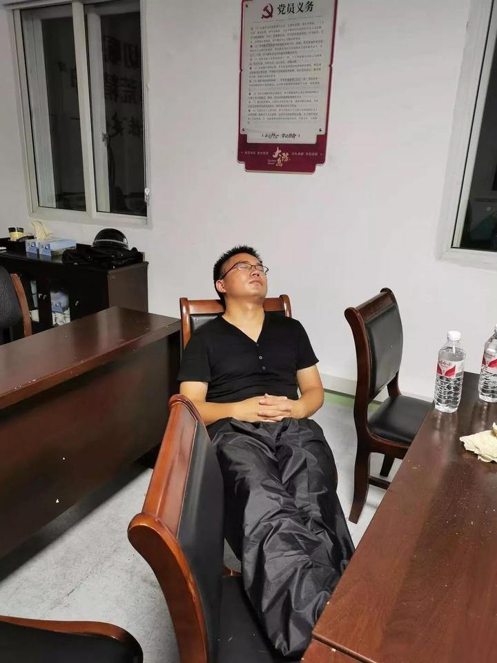 累瘫的大陈镇工作人员坐在椅子上睡着了。
