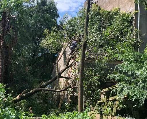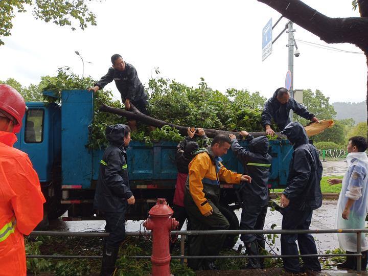 ▲园林处出动应急队伍250人次,对台风期间被吹倒的道路残断树枝进行突击清障处理。共出动作业车辆168车次,处理树木倒伏535处,处理断枝178车,处理积水(排水)5处,增设(水体等)警示标识35处。