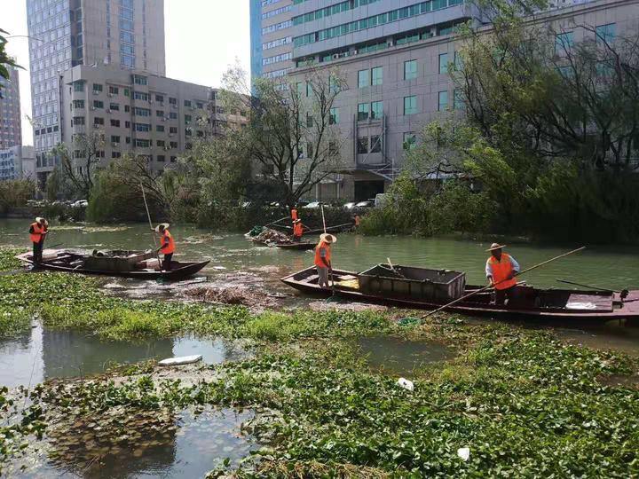 除了道路清理外,河道保洁也在有条不紊地进行。超强台风过后,河道垃圾呈几何数增长,成堆垃圾漂浮河面。随着风速下降,11日,共有15条保洁船、30名人员投入河道清理,共清理河道垃圾近50船。