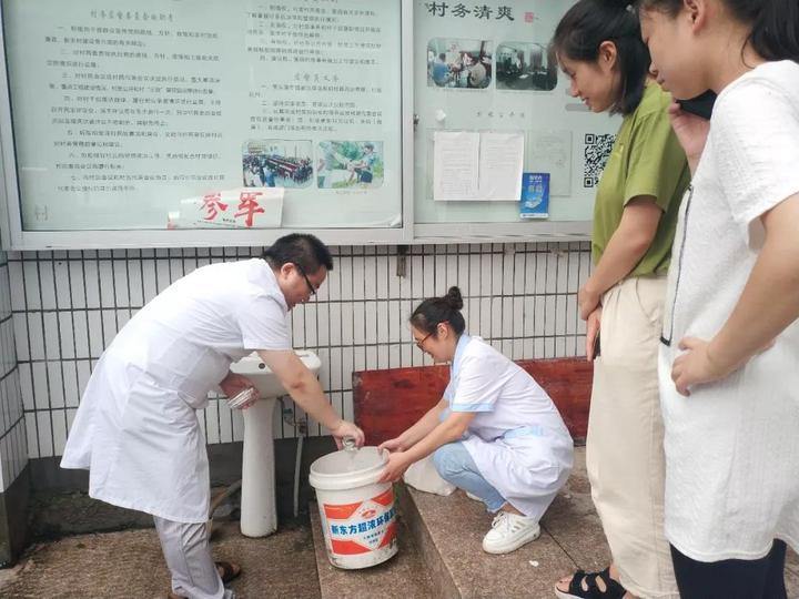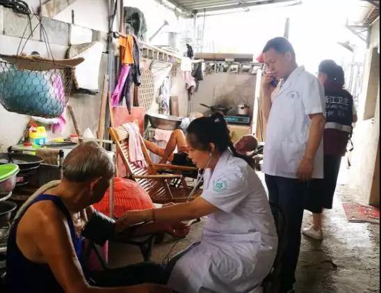 ▲台风过后,三州乡卫生院立即组织医护人员下村,对灾后进水户进行消毒杀菌,并进行防疫知识宣传。各村村干部、村民自发组织起来,清扫道路。