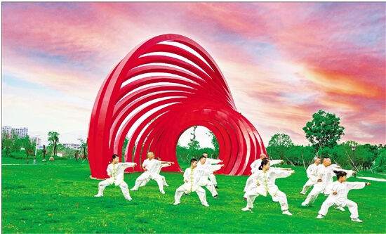 市民在黄岩智能模具小镇主题公园锻炼 图片由黄岩区新前街道提供