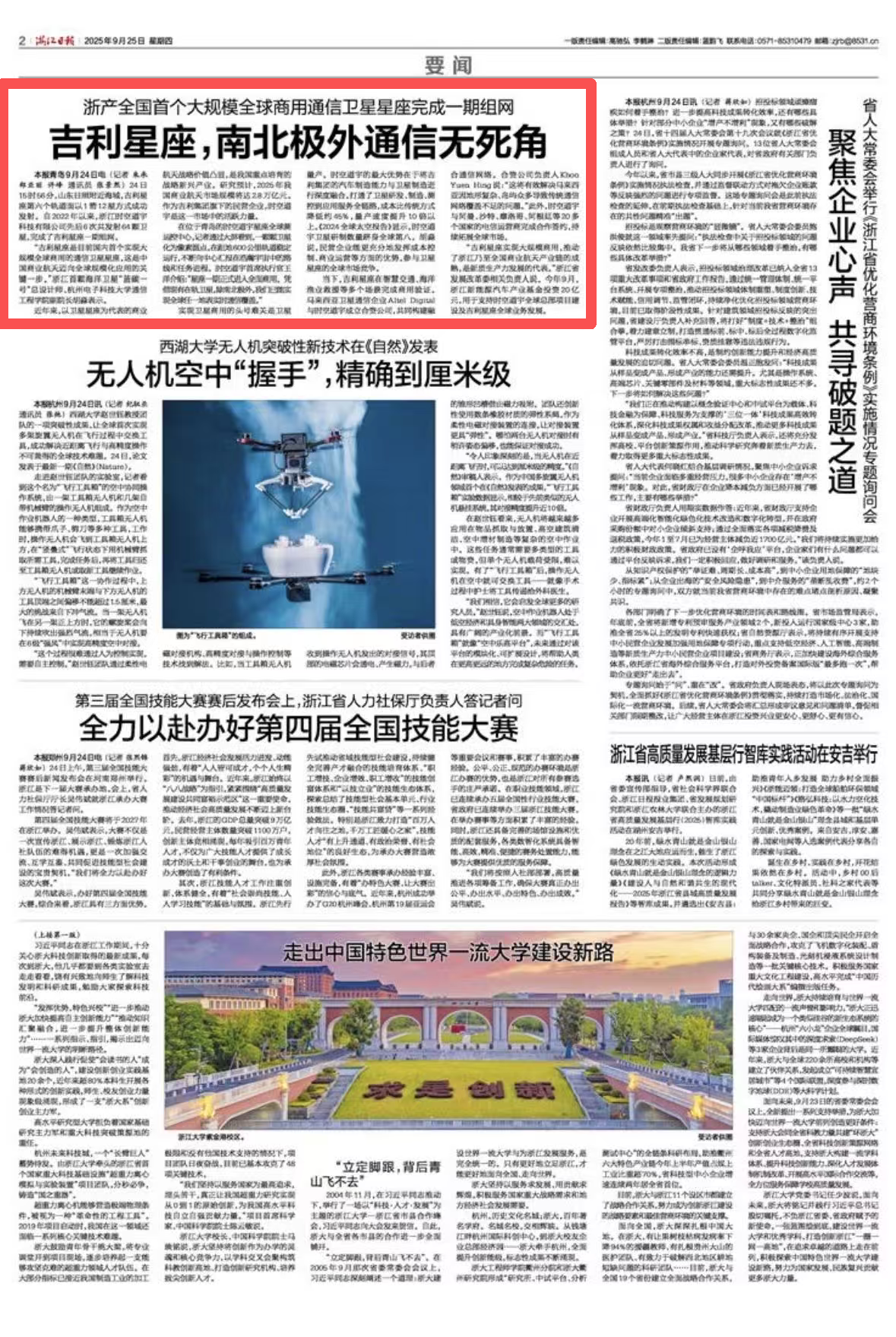 “吉利星座实现大规模商用,推动了浙江乃至全国商业航天产业链的成熟,是新质生产力发展的代表。”浙江省发展改革委相关负责人说。今年9月,浙江新能源汽车产业基金投资20亿元,用于支持时空道宇全球总部项目建设及吉利星座全球业务发展。