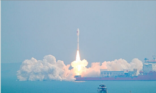 日前,我国太原卫星发射中心在山东日照附近海域使用捷龙三号运载火箭,成功将吉利星座06组卫星发射升空,卫星顺利进入预定轨道。 新华社发(安迪 摄)