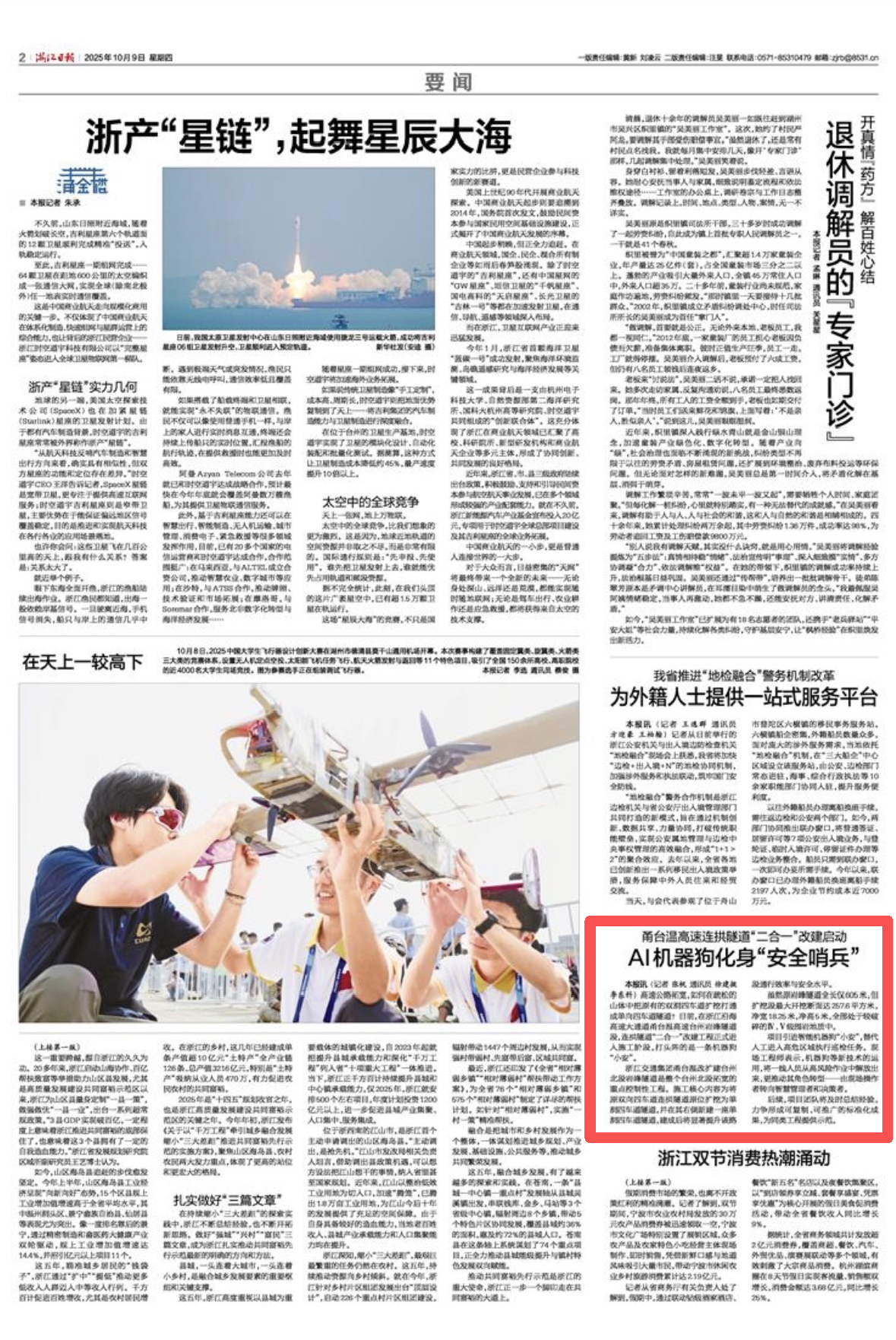 高速公路拓宽,如何在疏松的山体中把原有的双洞四车道扩挖打通成单向四车道隧道?日前,在浙江沿海高速大通道甬台温高速台州岩峰隧道段,连拱隧道“二合一”改建工程正式进入施工阶段,打头阵的是一条机器狗“小安”。