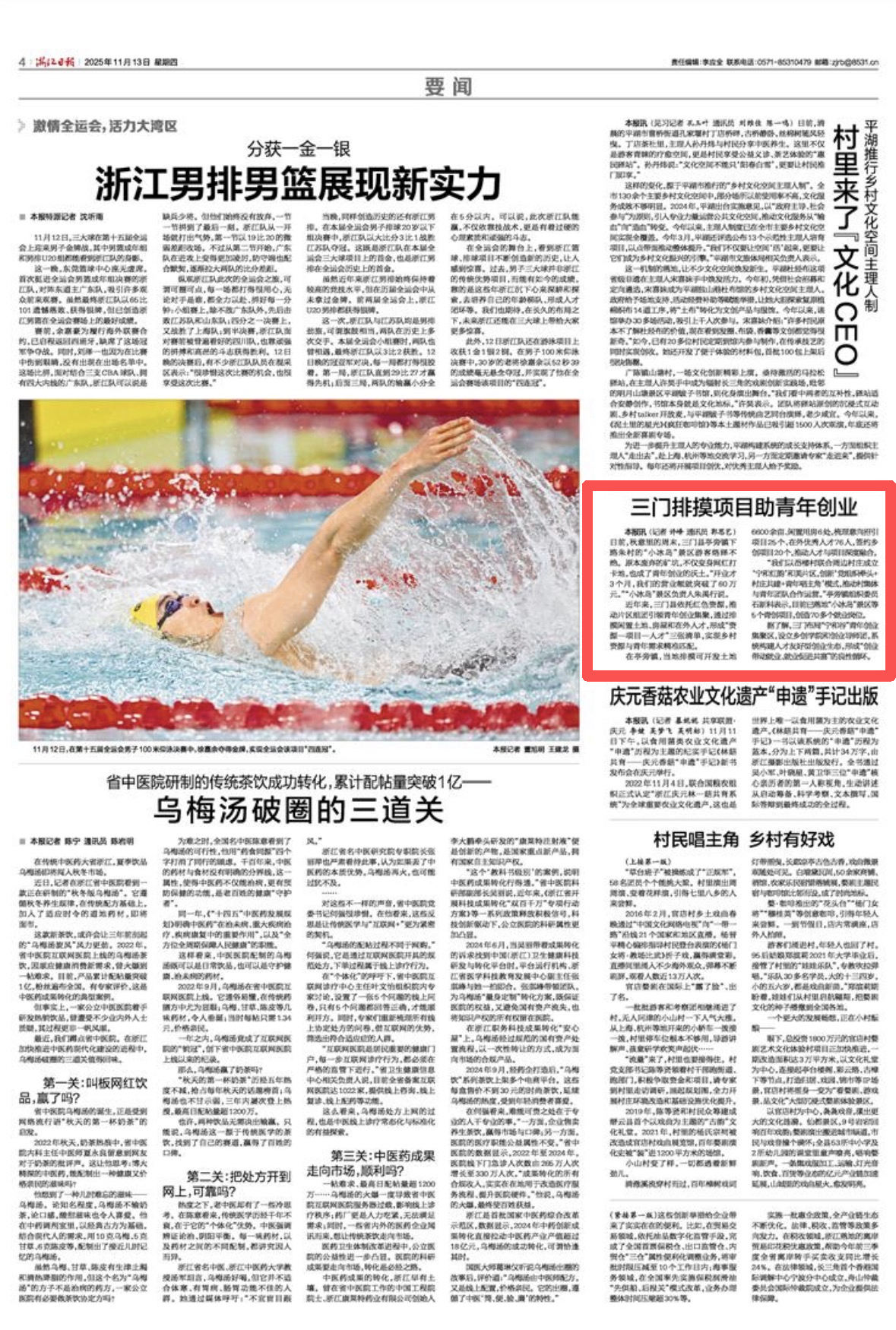 据了解,三门布局“宁和谷”青年创业集聚区,设立乡创学院和创业导师团,系统构建人才友好型创业生态,形成“创业带动就业、就业促进共富”的良性循环。