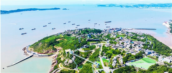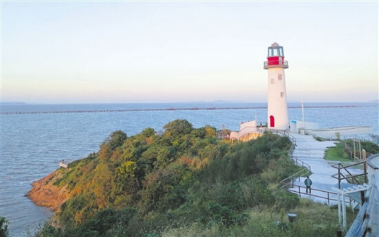 农行台州路桥支行支持建设的黄礁岛上,灯塔海景交相辉映。
