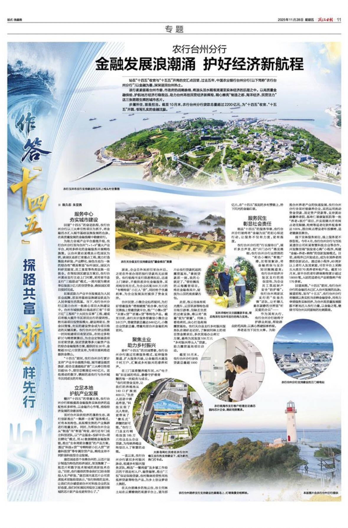 截至10月末,农行台州分行涉农贷款总量超1000亿元,在“十四五”规划的乡村赞歌上,钤下闪光的金融印章。