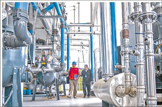 国网玉环供电公司工作人员对企业空压机余热回收设施开展“体检”。