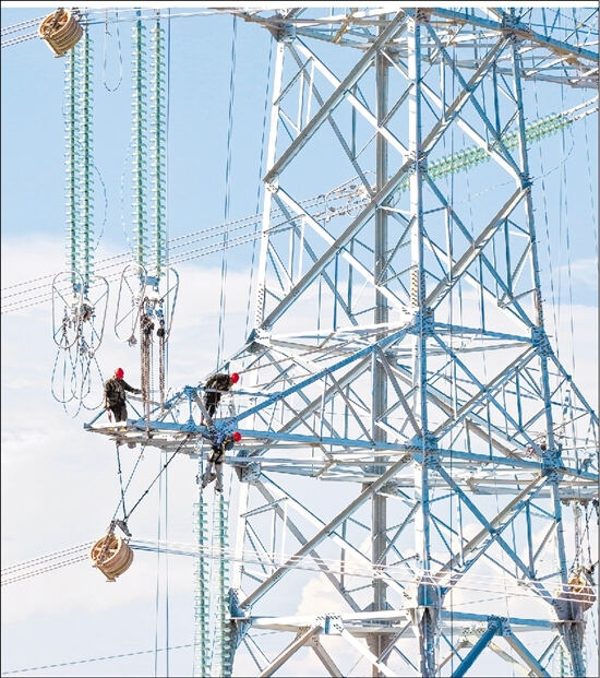 国网台州供电公司员工开展三门核电二期500千伏送出线路工程验收作业。 杨承怡 摄