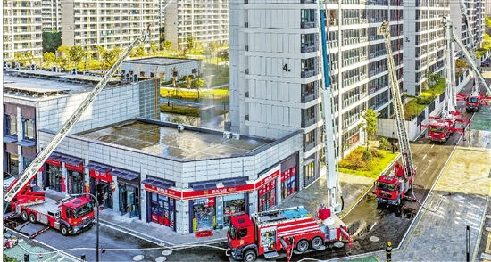 12月4日,台州市椒江区在尚雅苑小区举行高层住宅建筑灭火救援实战演练,通过演练无人机立体侦察、登高平台精准施救、高喷车外部控火等,进一步提升处置高层住宅建筑火灾的应急能力。