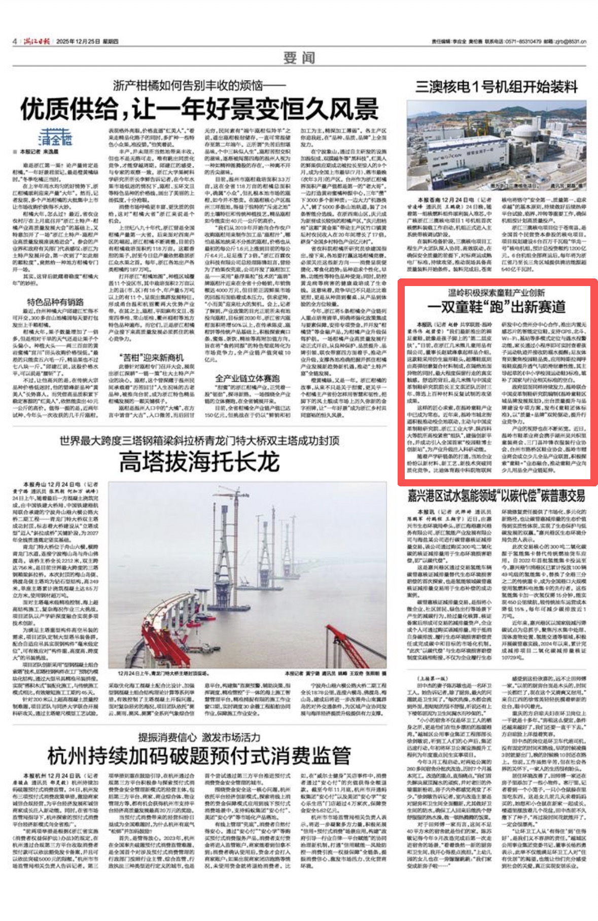 这样的匠心求索,在温岭童鞋产业中已成为常态。近年来,温岭市城北街道积极推动校企地联动,主动与中国皮革制鞋研究院、浙江工业大学、陕西科大等院所高校紧密“组队”,建强创新平台,并成功引入全国首家“校园鞋博士创新站”,为产业升级注入科研动能。