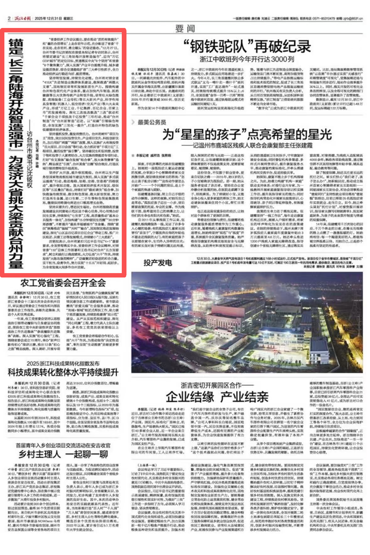 “省委经济工作会议提出,要在推动‘质的有效提升’和‘量的合理增长’上走在前作示范,充分彰显了省委‘干在实处、走在前列、勇立潮头’的奋进姿态。”12月27日,台州市委书记沈铭权在接受本报记者专访时表示,台州将锚定建设“长三角陆海开放智造强市”、迈向“万亿GDP城市”的定位目标,贯通落实中央“8个坚持”和省委“8个聚焦聚力”,深入实施“产业平台提能升级、城乡建设提质焕新、综合交通提级扩容”三大牵引性抓手,全力推动经济运行稳进向好、提质增效。