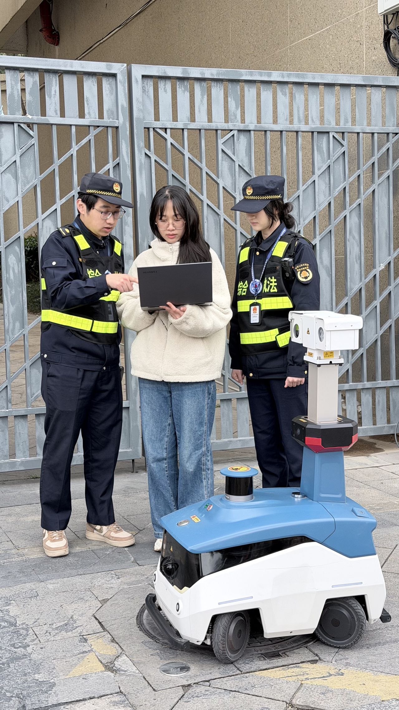 机器人先喊话,执法人员后续跟进