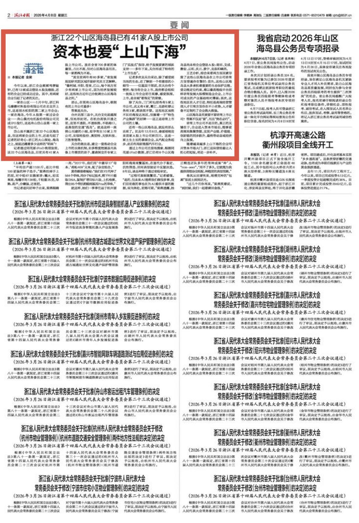 岱山虽不属浙江省22个山区海岛县,但这两家企业的上市,还是勾起了记者的好奇心:浙江的大山深处、海岛之上,到底还藏着多少这样的“明珠”?