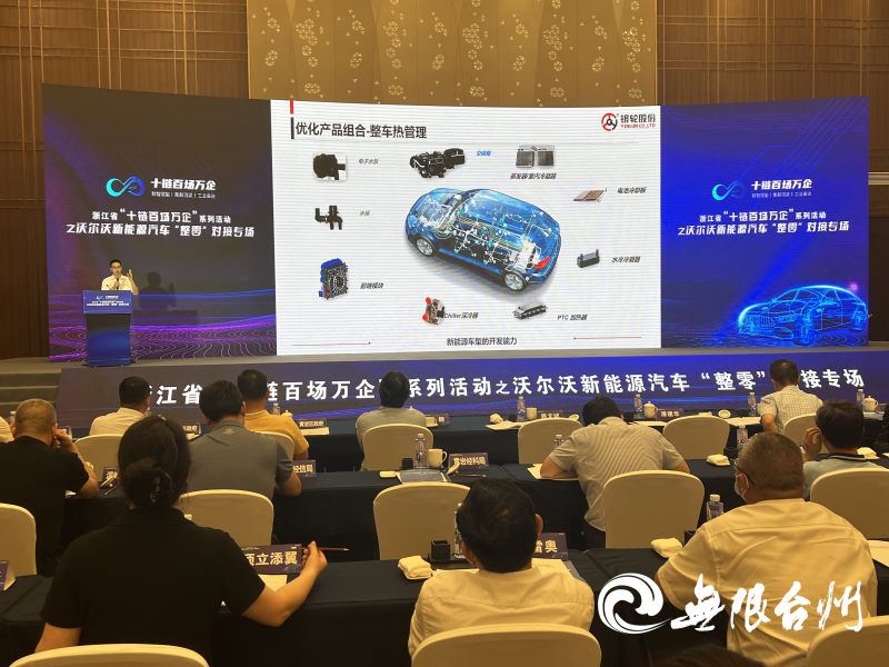 现场推介的整车企业代表是沃尔沃汽车亚太区相关负责人。台州此次参加活动的共有58家新能源汽车零部件企业,包括平台件、软件电子、动力系统和内外饰等4个方面的配套企业。