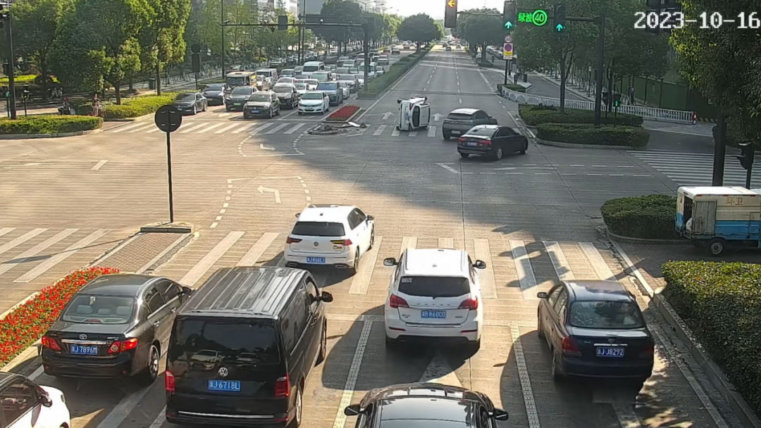 巨大的撞击声引来路人的关注,行人、环卫工人、执勤警察,一个人、两个人、三个人……