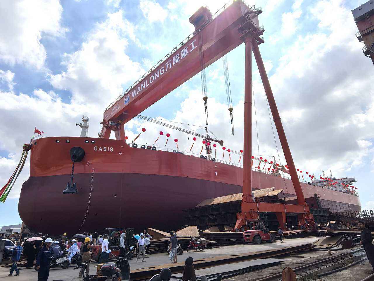 据台州市船舶工业协会工作人员介绍,“OASIS”(绿洲)不仅是目前我市民营造船企业自行研究制造的最大吨位的船舶,也是迄今全世界用气囊下水的载重量最大的船舶。