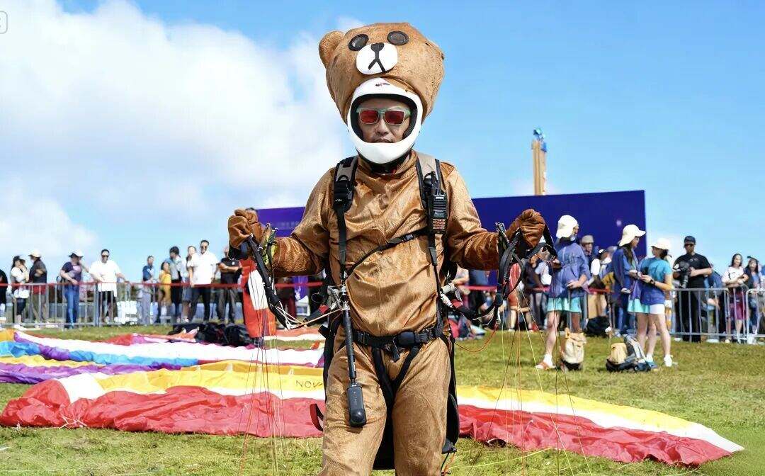 比赛现场,最具看点的当属化妆飞行。飞行运动员们身穿自制特色服装飞行,不仅展现了他们天马行空的创意,也为紧张的赛事注入了轻松活泼的氛围。