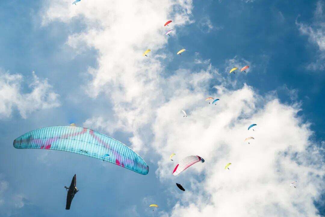据介绍,本届赛事共4天,共设置竞速比赛和化妆飞行比赛两个项目。来自全国各地的71名滑翔伞越野飞行员以蓝天为赛道展开角逐,尽享滑翔激情。