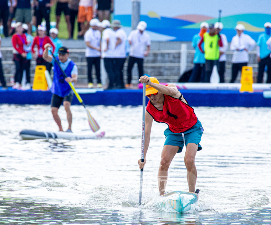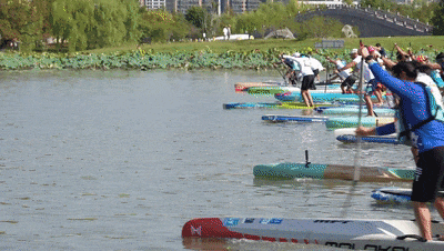 2000米绕标赛是对耐力与技巧的双重挑战,选手们需要绕行九龙湖一圈。湖面上,运动员们灵活地穿梭于桥洞之间,上演了一场扣人心弦的水上追逐战。一边是湖光潋滟的旖旎风光,一边是耐力与激情的碰撞,热情的赛事与诗意的美景在此交融。