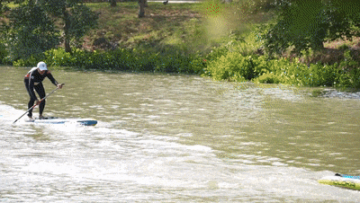 湖中云影与桨板辉映,水花与欢呼声同频跃动……