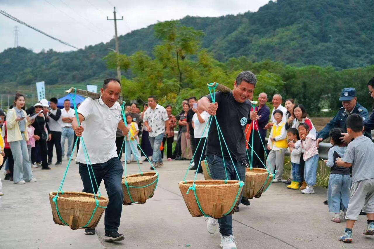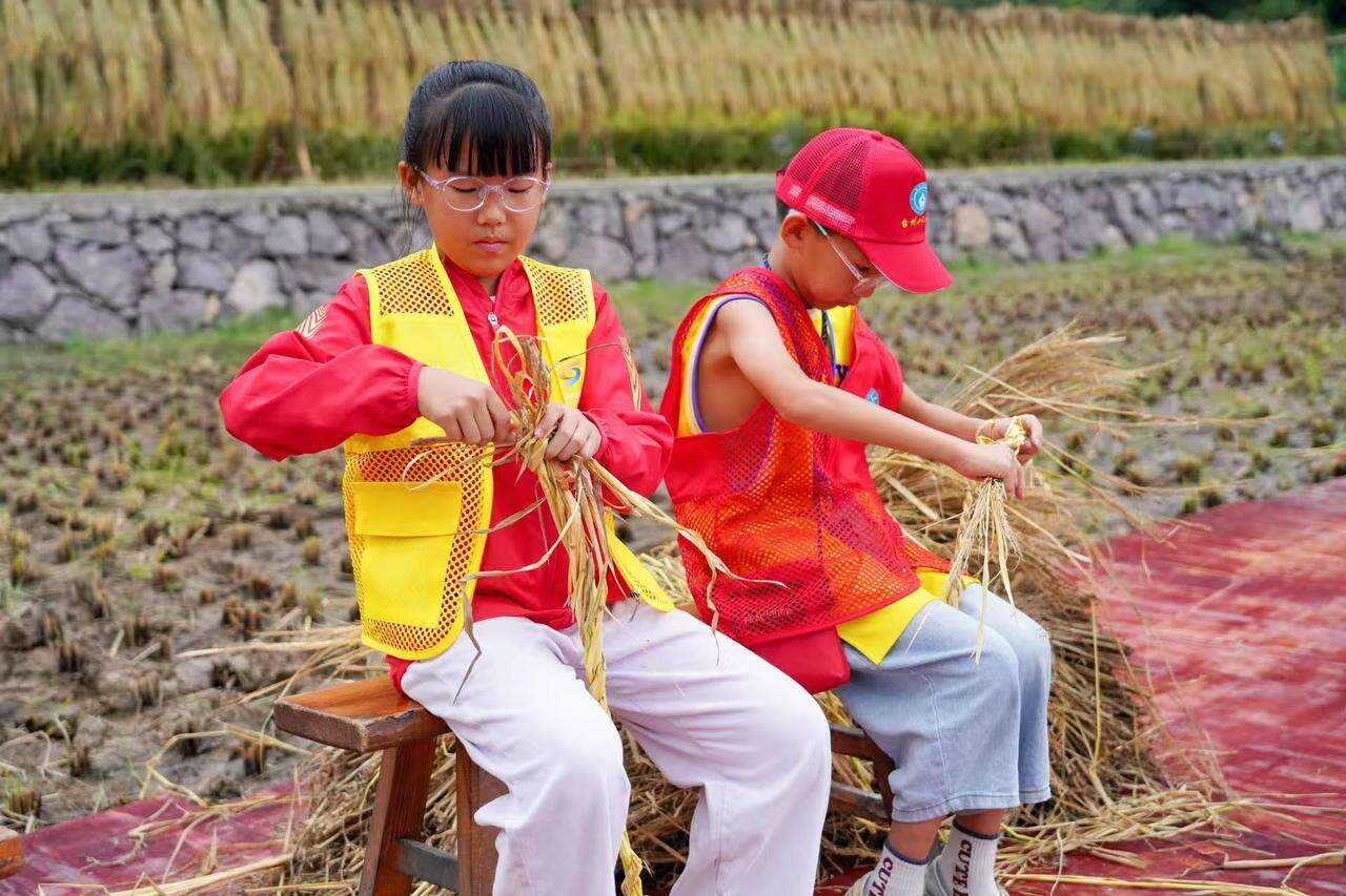 开售活动现场,还设置了割稻、翻稻、推车运粮、挑担比赛等传统农耕互动小游戏,让来到现场的大小朋友们能够亲身体验农耕文化。小朋友们在家长的陪伴下,穿梭在稻田中,干起农活来有模有样。