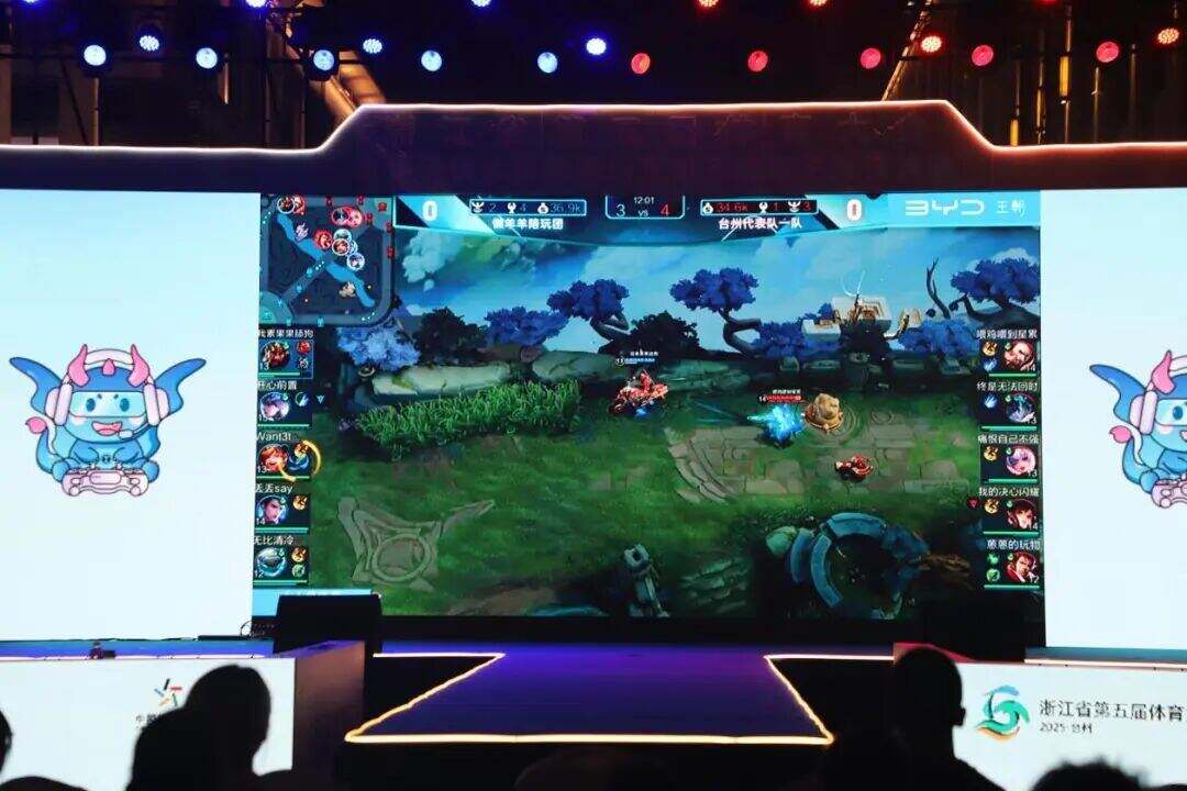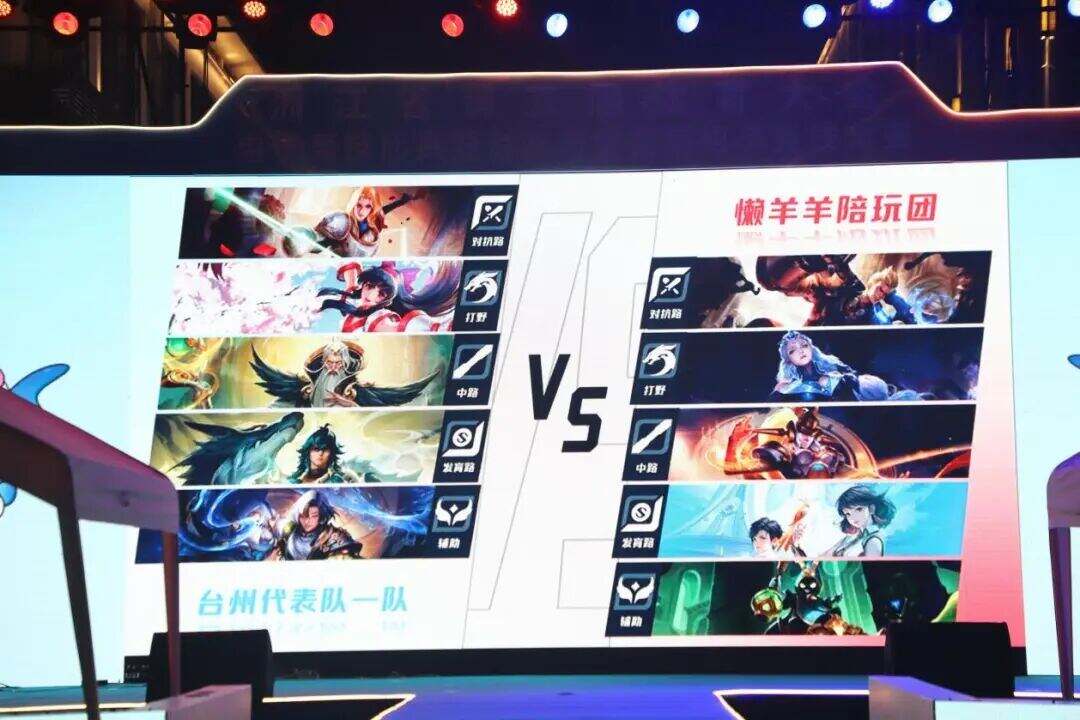 当晚7时,现场所有人的目光都聚焦在《王者荣耀》的终极对决。这场王者之战的冠军队伍将在懒羊羊陪玩团战队和台州市代表队一队之间产生。