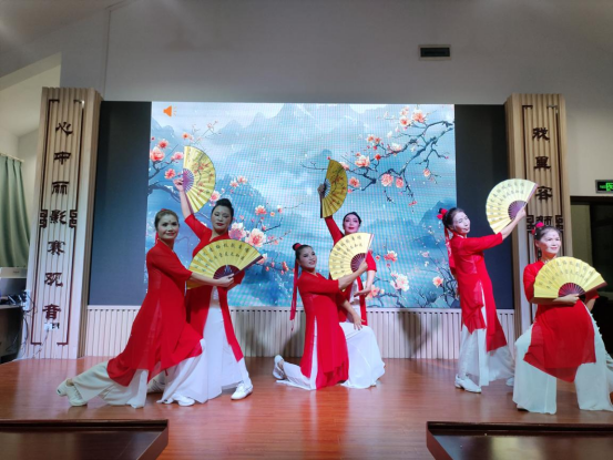演出在充满活力的《雪龙吟串烧》中拉开序幕,激昂的节奏与动感的舞步迅速点燃了现场气氛。紧接着,太极表演《萧剑》,以柔克刚、阴阳相济,完美诠释了和合文化中刚柔并济、和谐共生的哲学智慧;舞蹈《西湖山水》以柔美婉约的舞姿,勾勒出人与自然和谐共生的江南画卷;越剧选段《观灯》则通过细腻传神的表演,在传统戏曲的韵味中彰显和合之美。