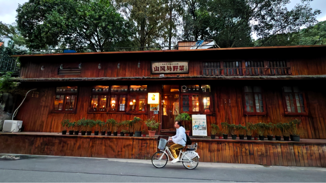 傍晚,椒江枫山脚下渐显热闹。下班年轻人三五成群觅食:有人进“山风与野菜”,有人寻“古食小味”,有人登阶赴“新京涮火锅”。谁能想到,这些被青竹、芭蕉环绕的文艺店铺,前身是破旧废弃厂房?