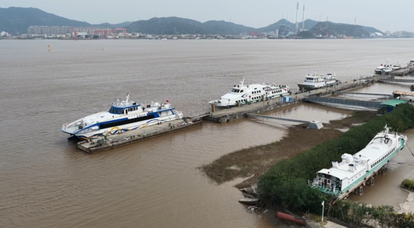 11月10日上午10点,记者在台州市海上客运中心码头看到,椒江至大陈、椒江至一江山岛的客渡轮均已停航。