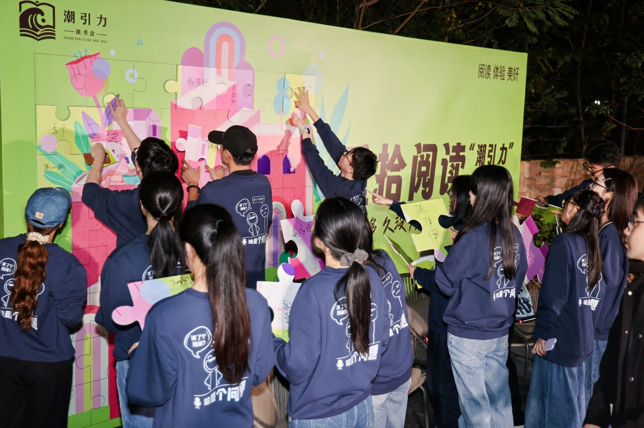 活动伊始,一场别出心裁的“思想城邦”拼图签到仪式让气氛破冰。每位参与者将写有自己名字的拼图块嵌入“潮引力”读书会版图中,以象征共同构筑起思想共同体。