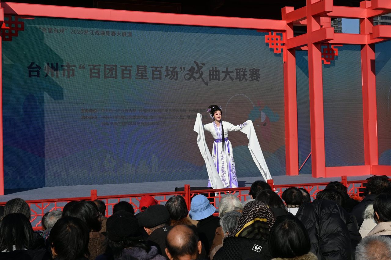 1月3日晚,随着《梁祝·十相思》的最后一段水袖缓缓收拢,台州市“百团百星百场”戏曲大联赛(个人演唱赛、团队折子戏赛)在椒江区葭沚老街圆满落幕。这场历时三天的新年戏曲盛宴,既是一场越剧赛事,也是一次全民参与的文化雅集。赛事累计吸引现场观众数15万人次,通过网络平台观看直播的观众超过100万人次,赛事被人民网、凤凰网、浙江卫视等央媒、省媒关注报道。