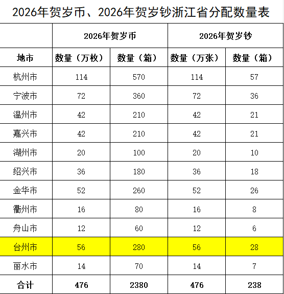 那么,此次台州分配到多少马年纪念币和纪念钞呢?中国人民银行浙江省分行公告显示,此次浙江省共分配到476万枚纪念币、476万张纪念钞,其中台州分配到56万枚纪念币、56万张纪念钞。