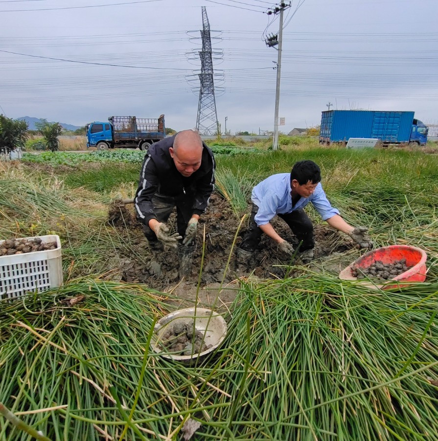 连日来,在黄岩区院桥镇上桥洋村的荸荠田,种植户们忙着采收荸荠。该镇1000多亩荸荠喜获丰收,预计产值超1500万元。