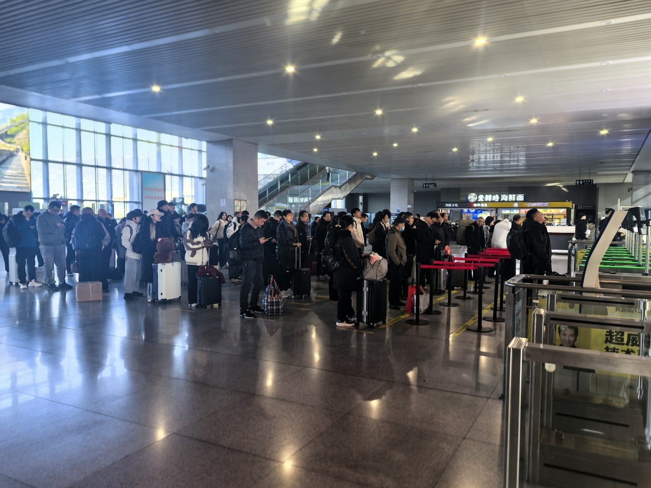 2月2日上午,记者来到铁路台州站和铁路台州西站看到,候车大厅内人潮涌动、热闹非凡,有旅客拎着大包小包的行李和特产准备回家过年,也有的旅客轻装上阵,准备开启一段春节前的中短途旅行。