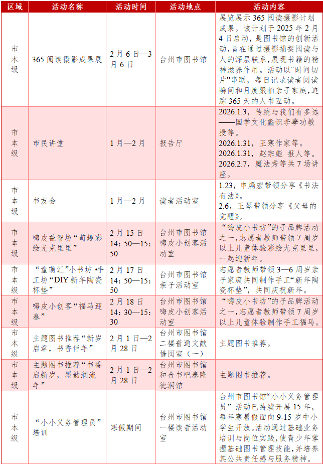 活动地点:台州市图书馆普通文献借阅室(一)