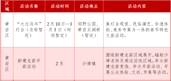 活动内容:以“大过马年”为核心主题,深度挖掘生肖文化与黄岩地方历史底蕴,打造一场集灯彩艺术、非遗展演、科技互动、美食体验于一体的春节文旅盛会。