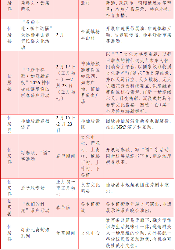 2026神仙居旅游度假区新春盛典活动