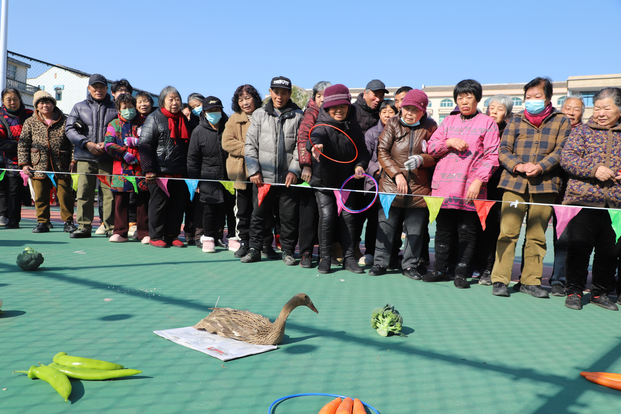 老年区的活动同样精彩纷呈,淋头村文化礼堂别出心裁推出实物套圈游戏,奖品从活蹦乱跳的鸭子到新鲜蔬菜应有尽有,引得村民跃跃欲试。73岁的项贞云老人听闻活动消息后专程赶来,她手持套圈全神贯注瞄准目标,虽未中大奖,仍笑得合不拢嘴:“今天太高兴啦!活动办得真热闹,就像小时候赶大集一样,年味儿十足!”